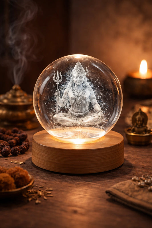 Mahadev 3D Crystal Lamp | Laser Engraved Shiva Light 🕉️