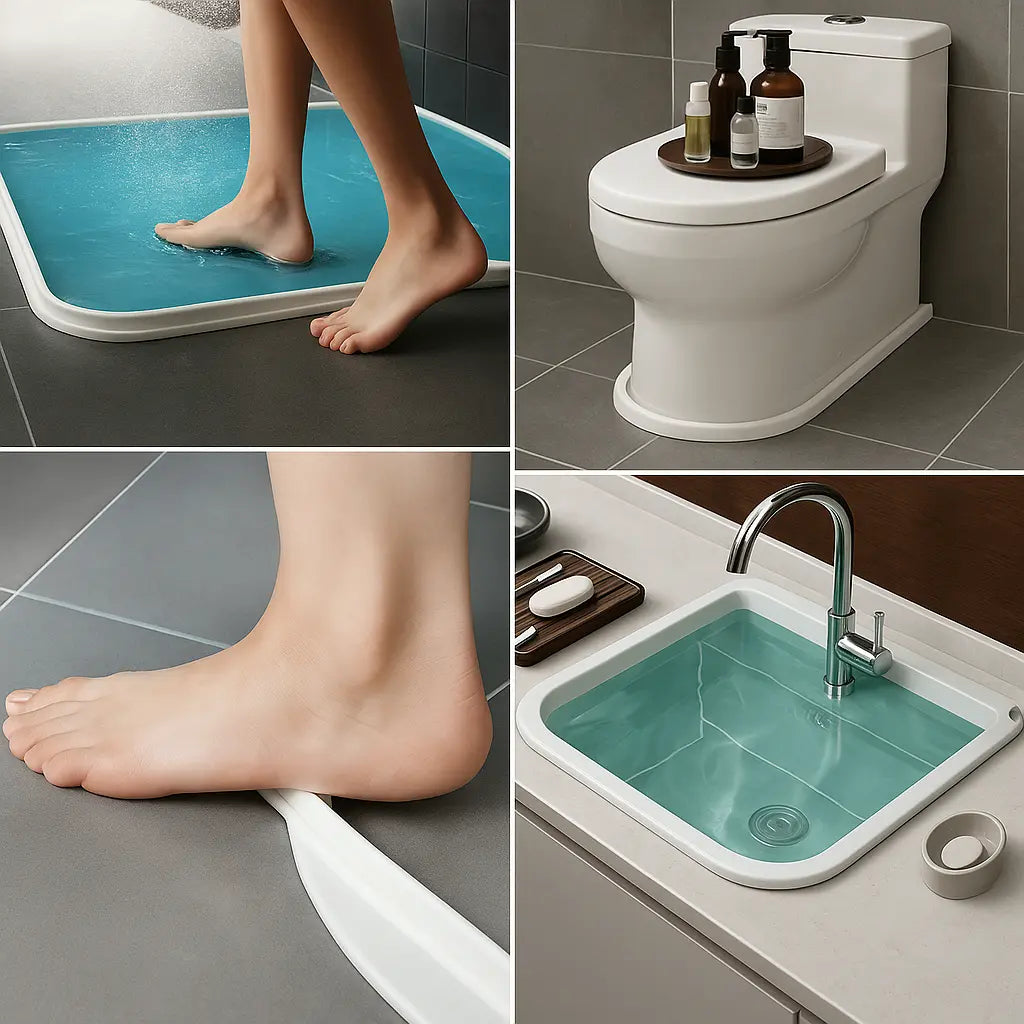 Minimal, low-profile design blends effortlessly with modern bathrooms and kitchens. Keeps wet zones tidy by holding water in place and preventing messy spillovers, giving your space a neat, organized finish.