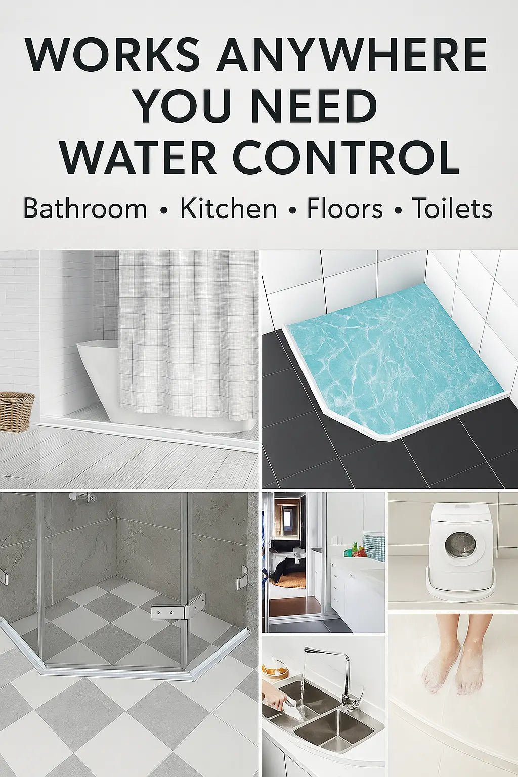 Keep your bathroom and kitchen dry with this premium silicone water stopper. Designed to bend and fit perfectly along edges, it stops water from flowing off countertops and into unwanted areas. The soft, flexible silicone creates a reliable barrier that helps prevent wet floors, slips, and daily mess making your space safer and easier to maintain.